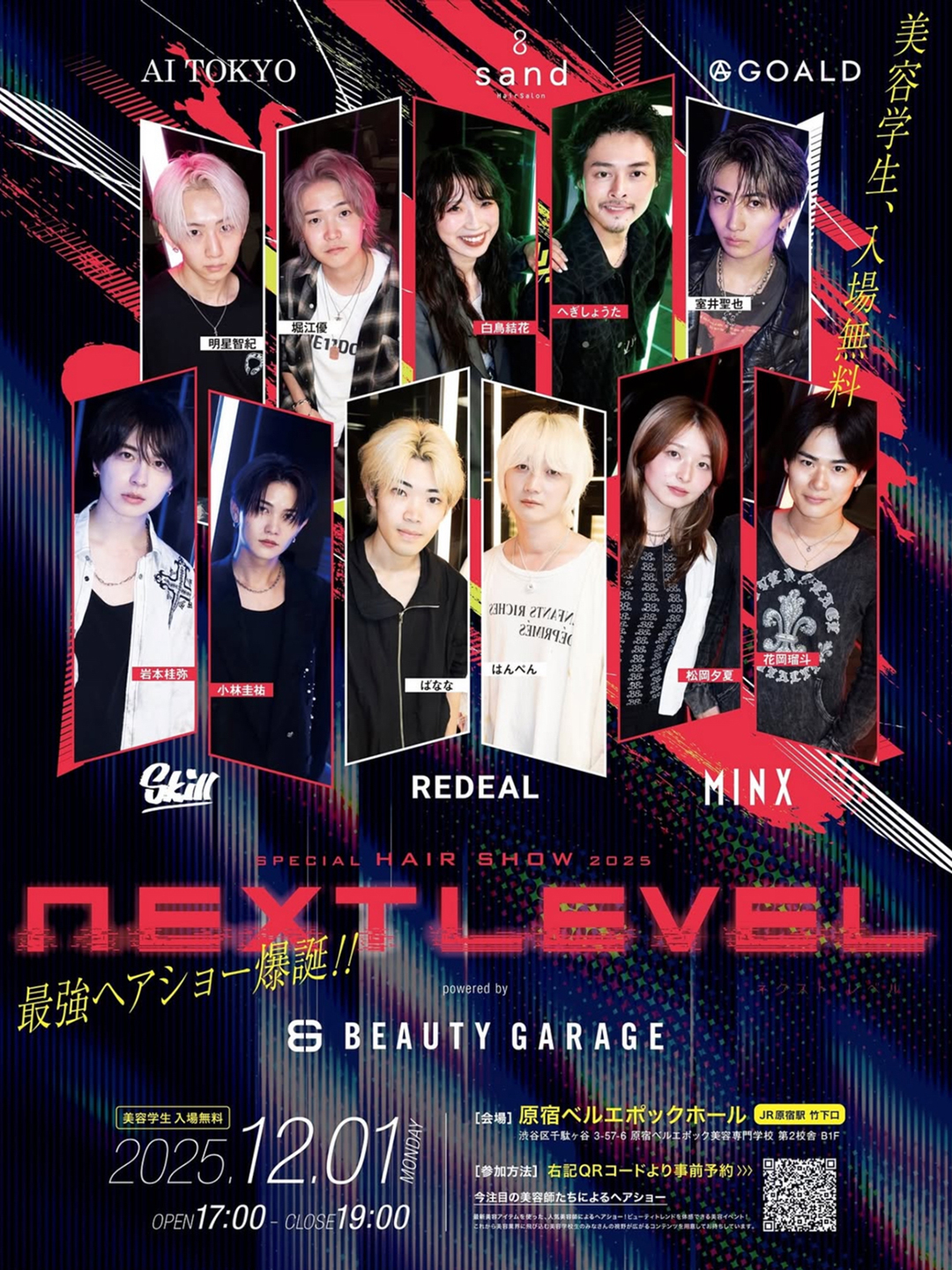 【12月1日(月)ヘアショー開催決定】“NEXT LEVEL” 美容師が覚醒するステージに、トップサロン集結!REDEAL、Skill、MINX、sand、GOALD、AI TOKYO出演決定!
